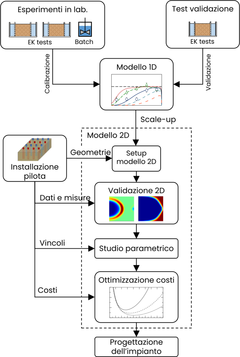 - Sviluppare un modello in grado di simulare i processi di rimozione degli inquinanti nei sistemi di bonifica elettrocinetica